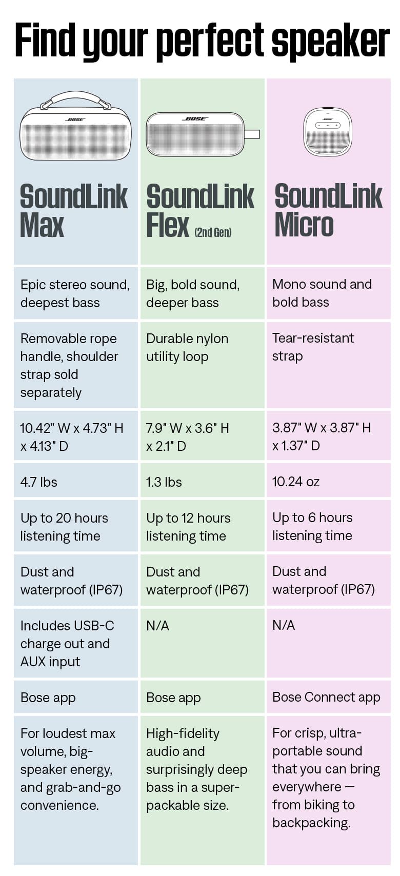 Amp up the adventure by linking two compatible Bose speakers. Choose Stereo Mode for right and left channels, or Party Mode for bigger, bolder sound.